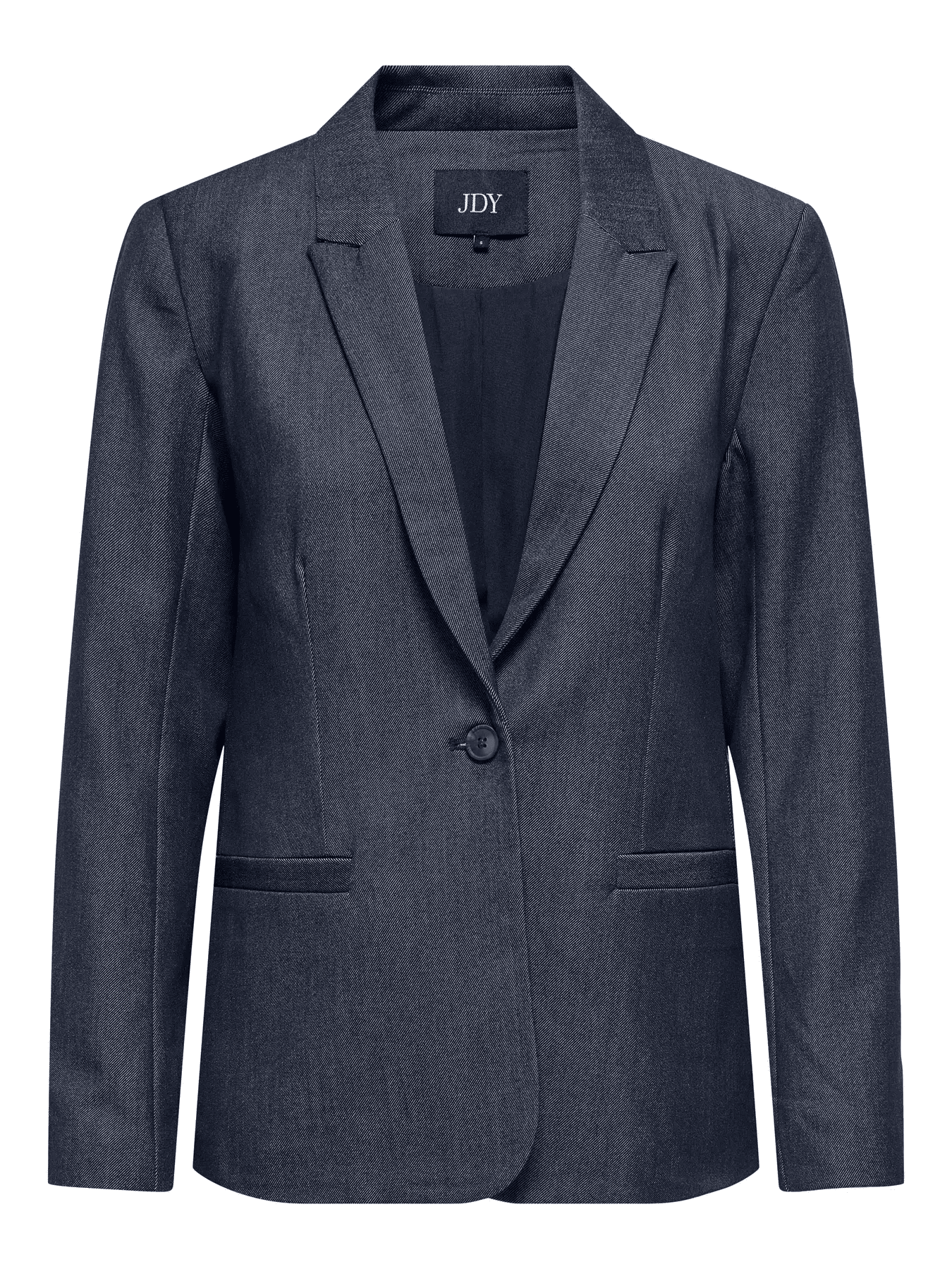 Blazer estruturado de alfaiataria, na cor denim blue.