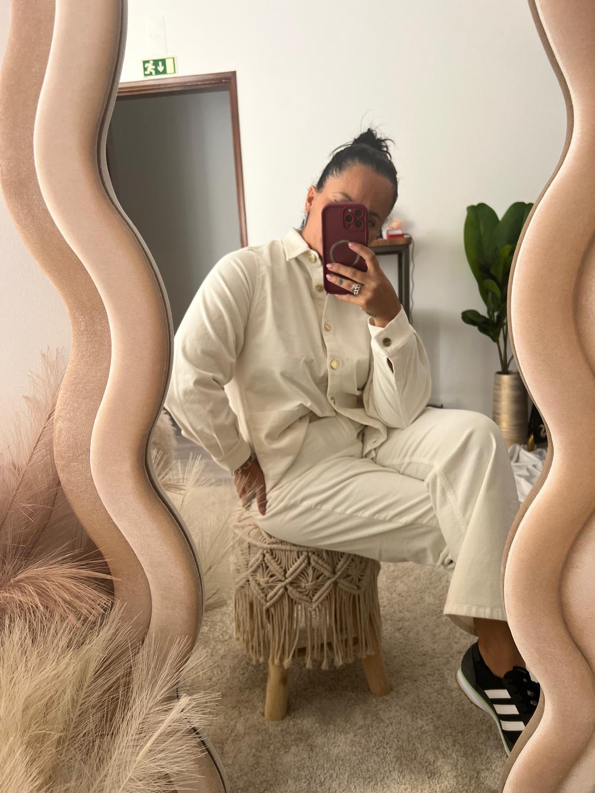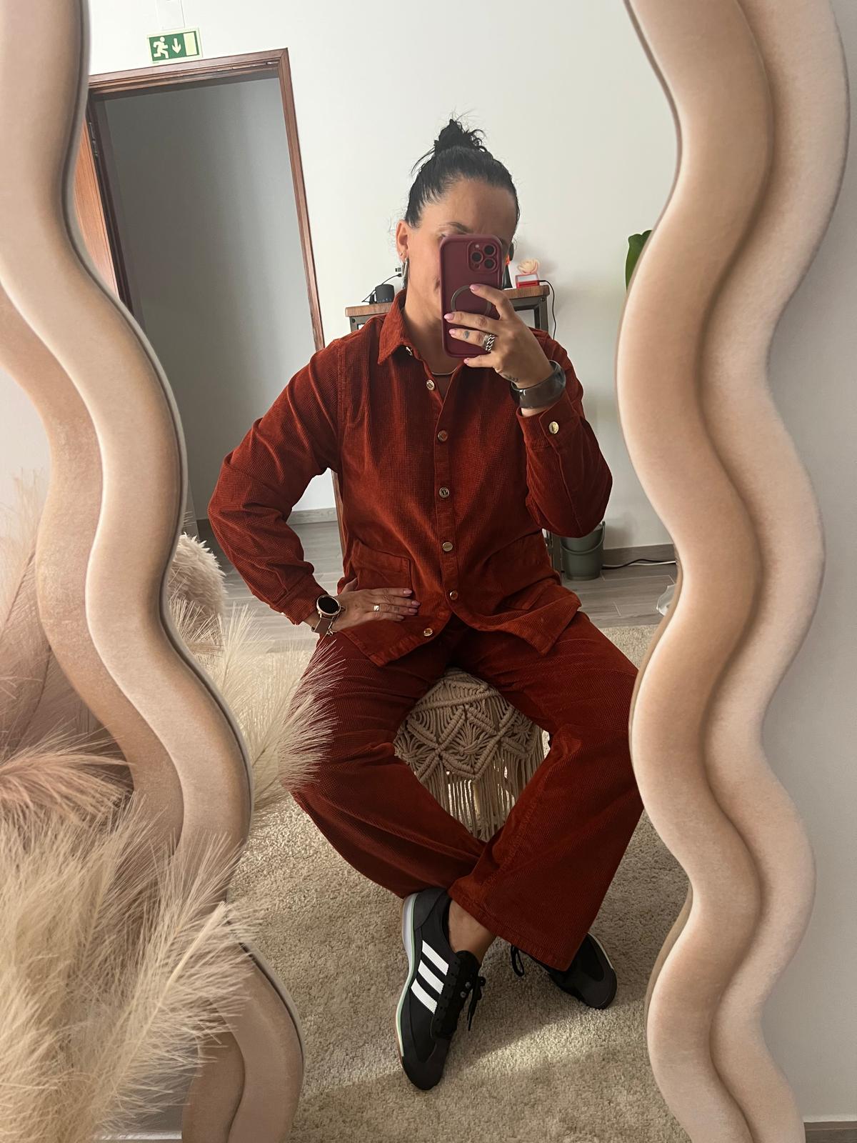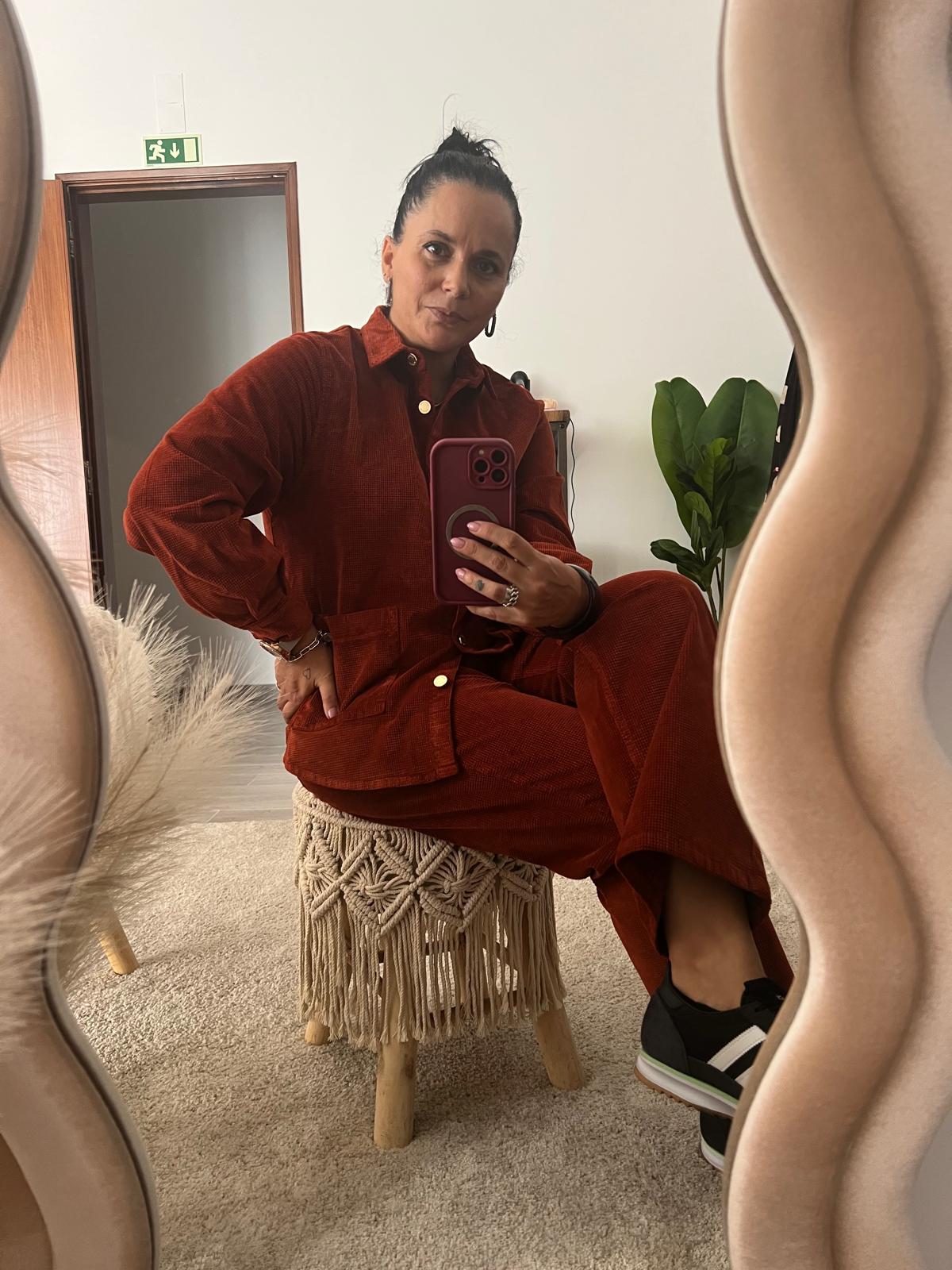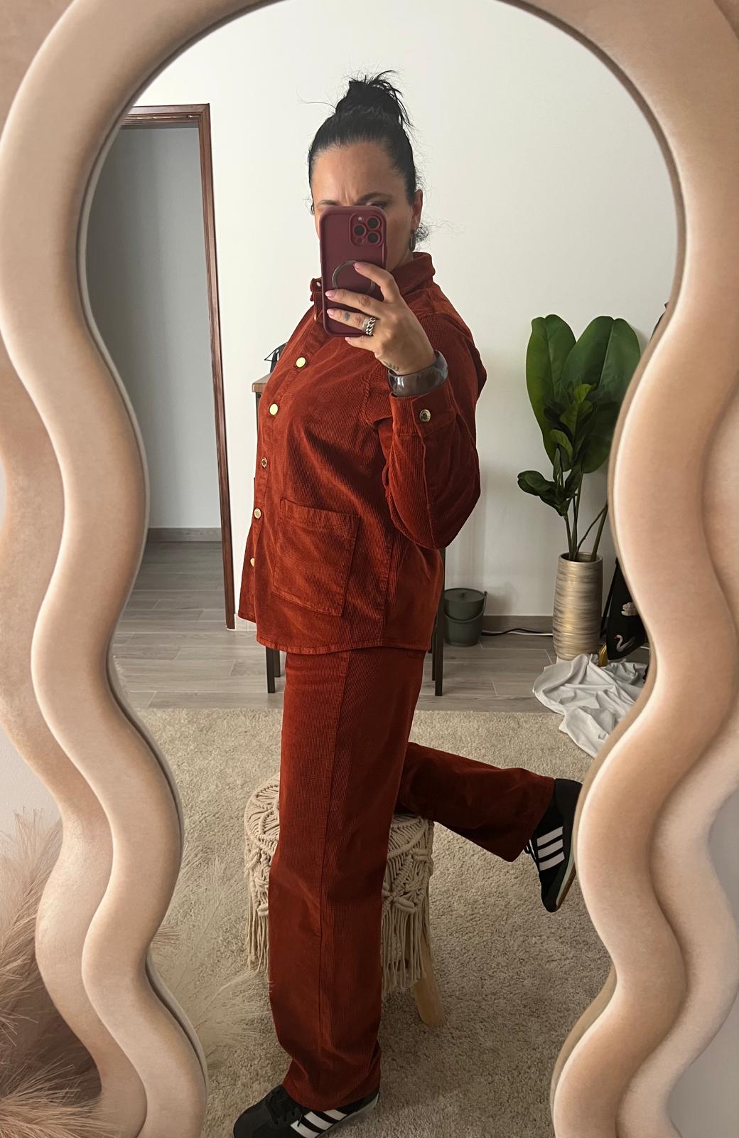 CALÇA STRAIGHT 03 – VELUDO – BRANCA / TERRACOTA