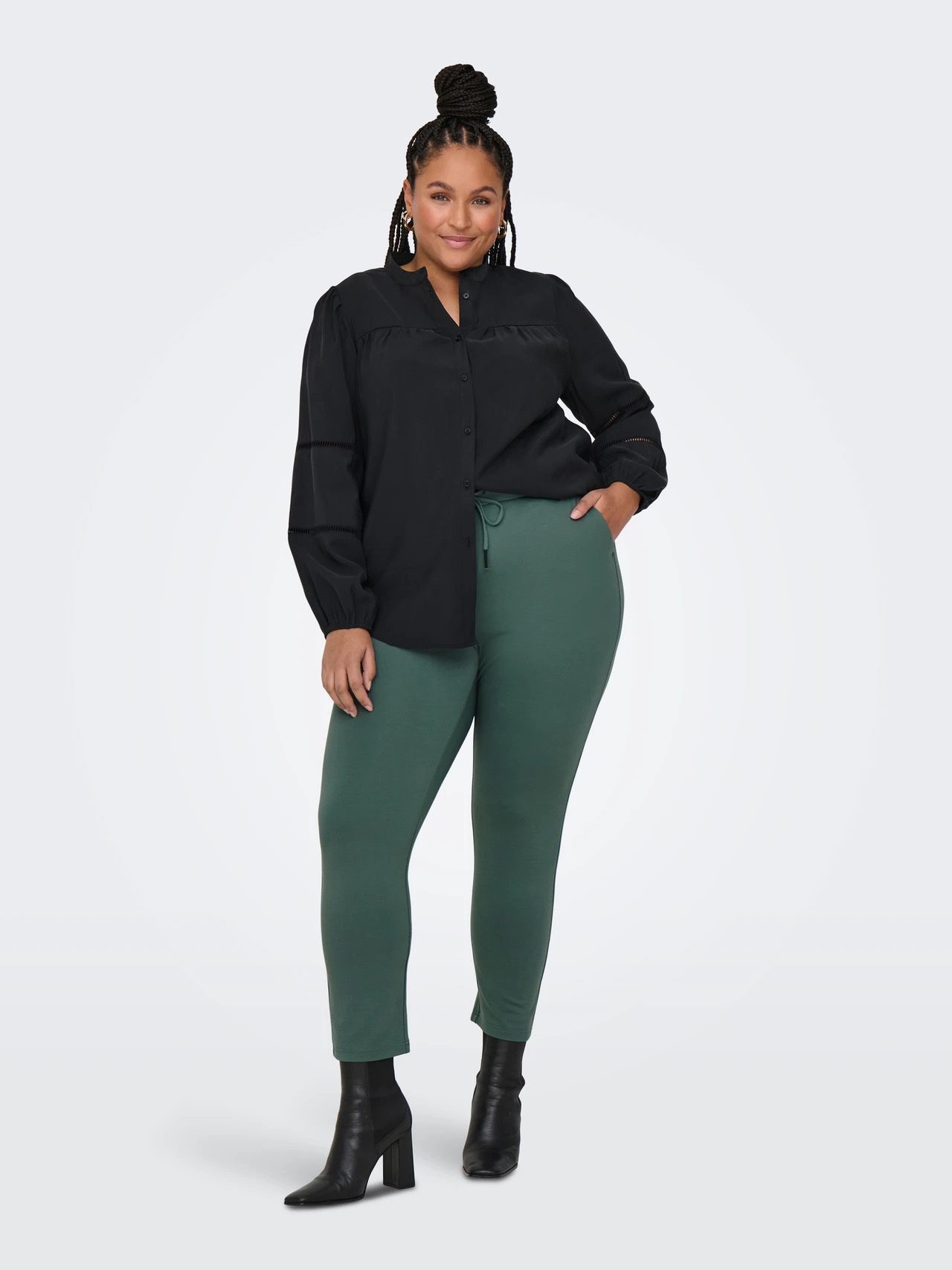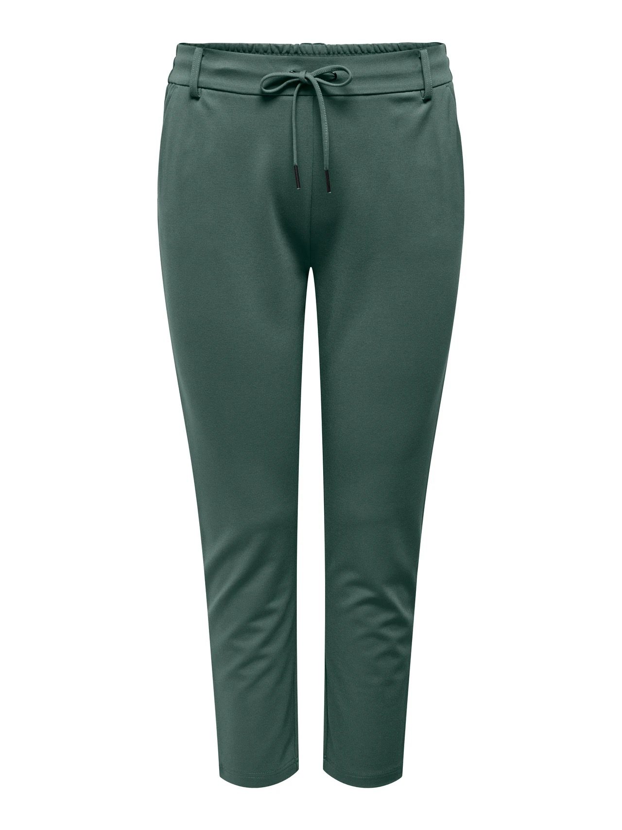 Calça tipo jogger, com atilhos e elástico na cintura.
