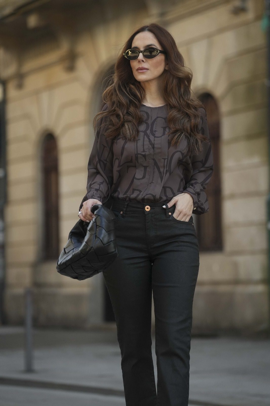 Camisola em tons acastanhados, de manga comprida e decote redondo, com logo da marca.