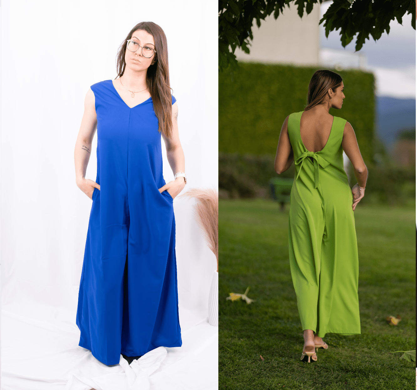 MACACÃO OVERSIZE LAÇO COSTAS – VERDE ALFACE / AZULÃO CAFOFO