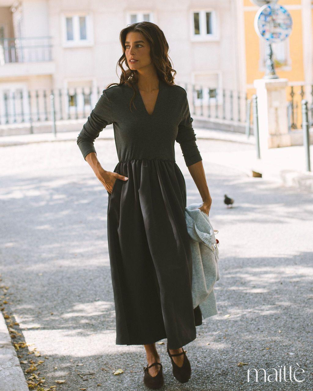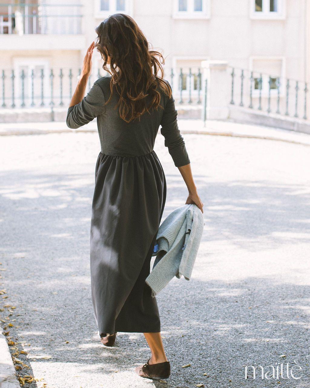 Quando menos é mais… podia ser só um vestido cinza liso, mas não é. É @maïttè!
