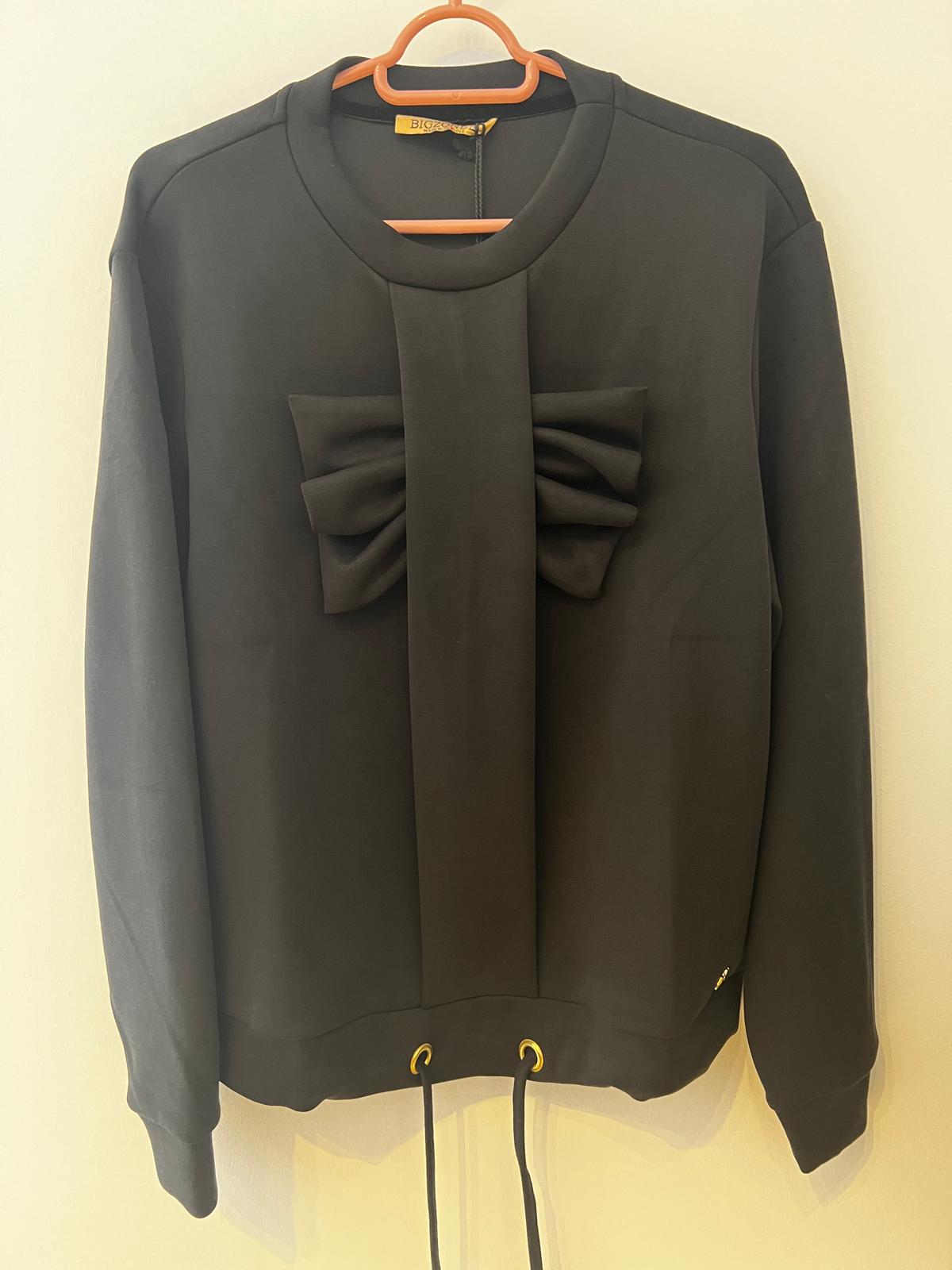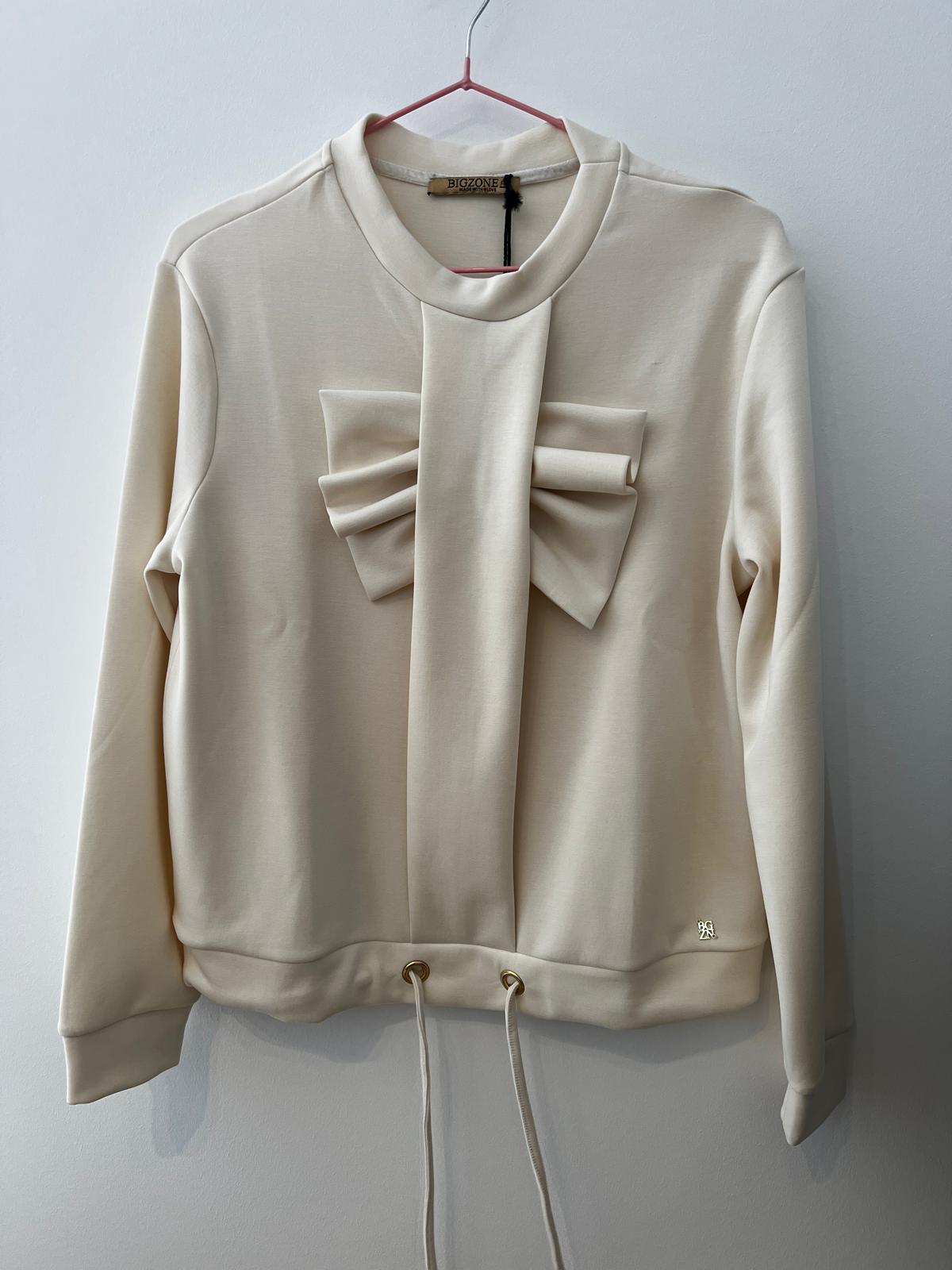 Sweatshirt em tecido aveludado, com efeito de laço na zona do peito. Cordões em baixo para ajuste.