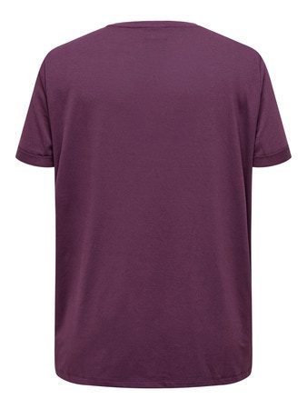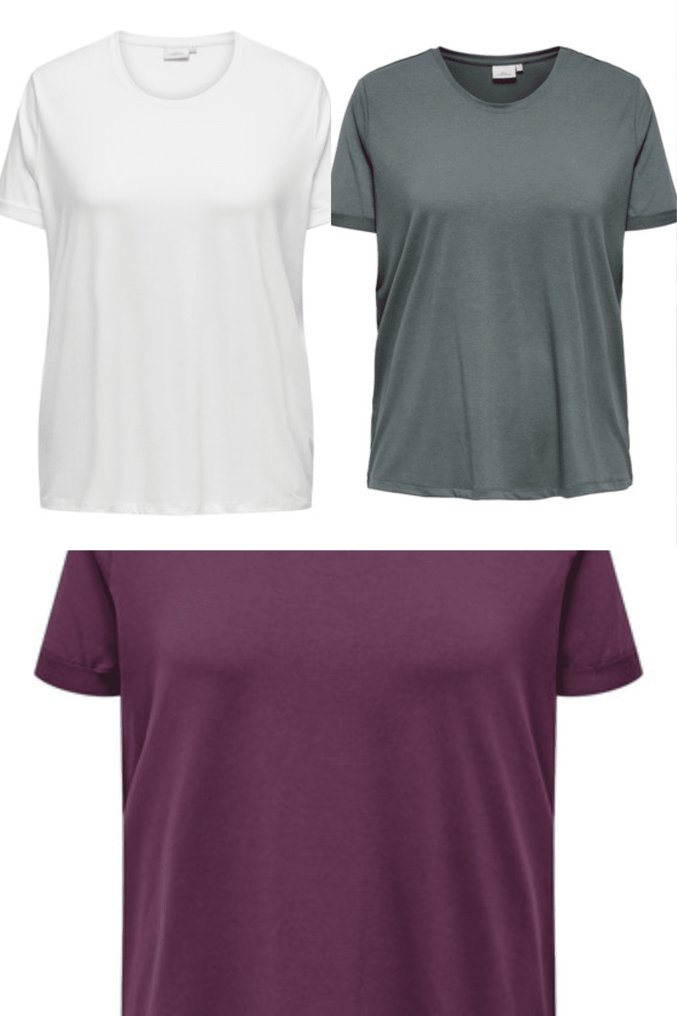 T-shirt/túnica, manga curta com dobra no bordo. Decote redondo.