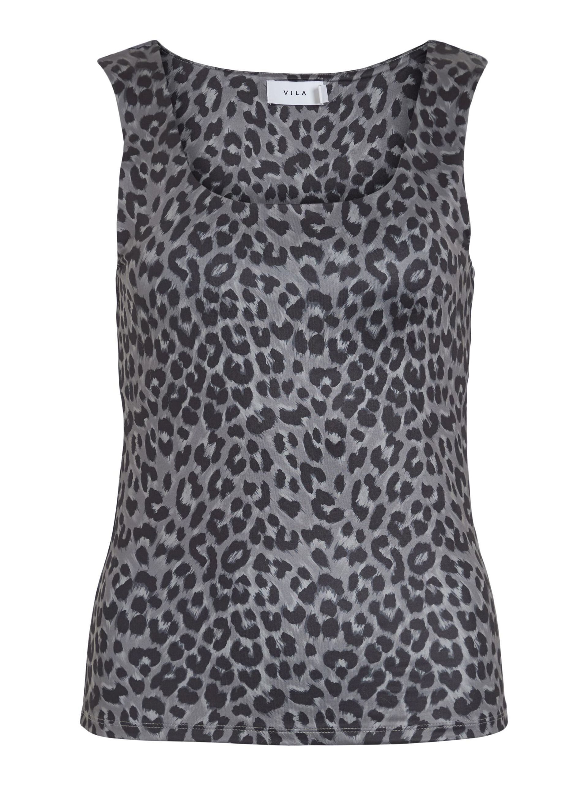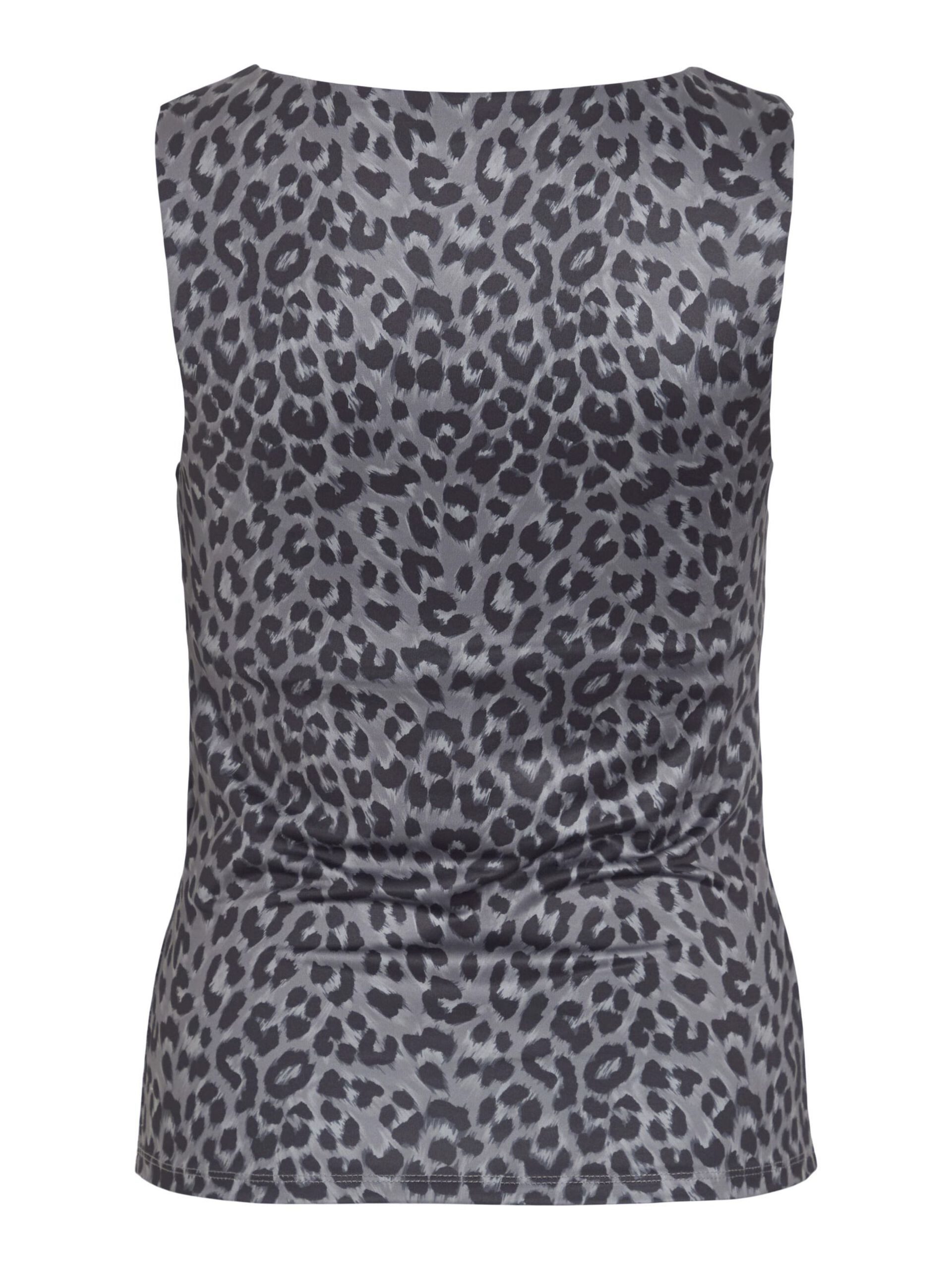 Top padrão leopardo cinza, decote quadrado, com forro no peito.