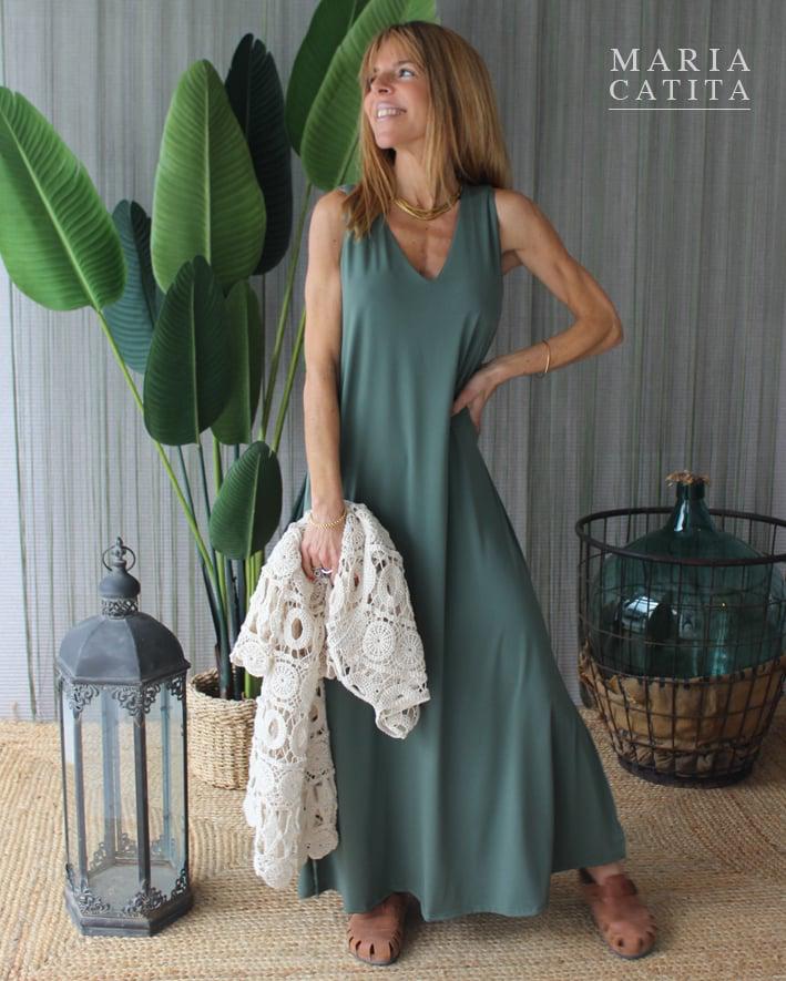 VESTIDO COMPRIDO VERDE E RENDA MARIA CATITA – TAM U