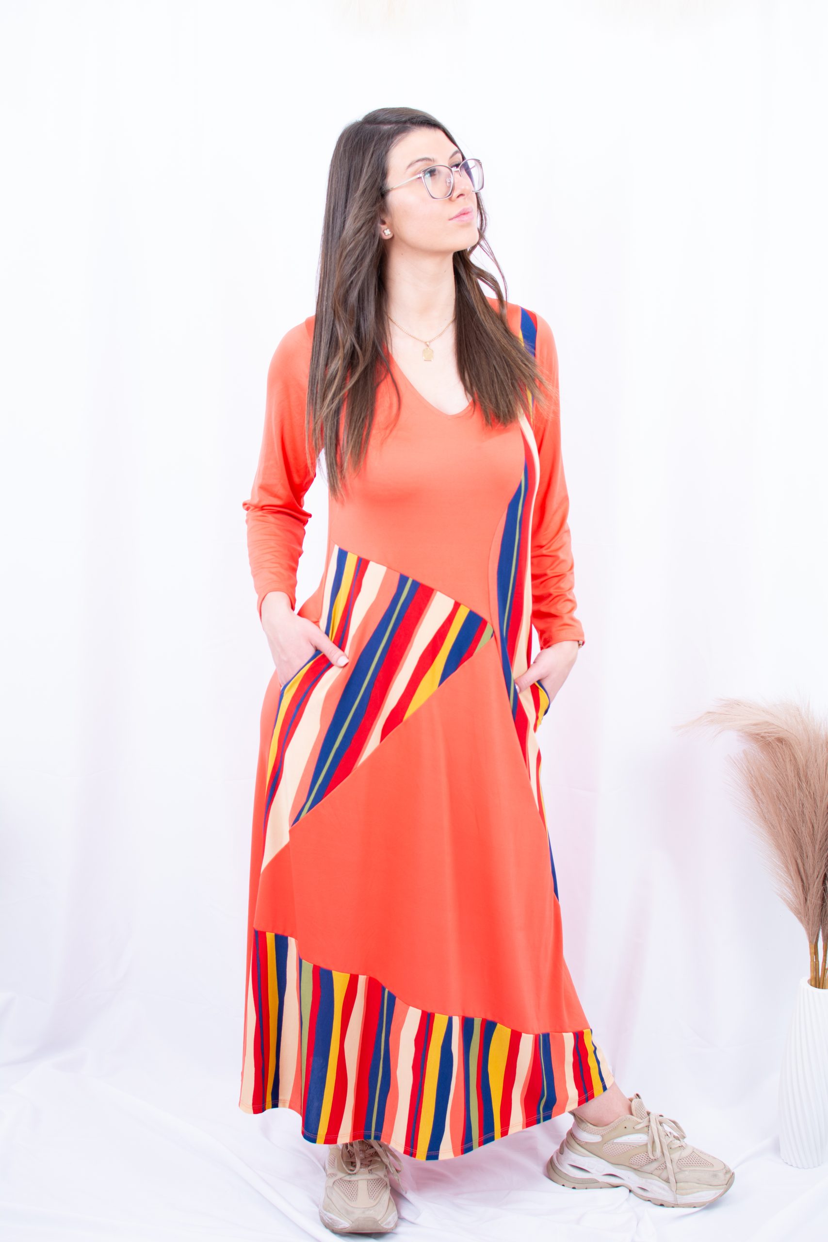 VESTIDO CORAL COM RISCAS COLORIDAS TROPICAL BRASIL – TAM U