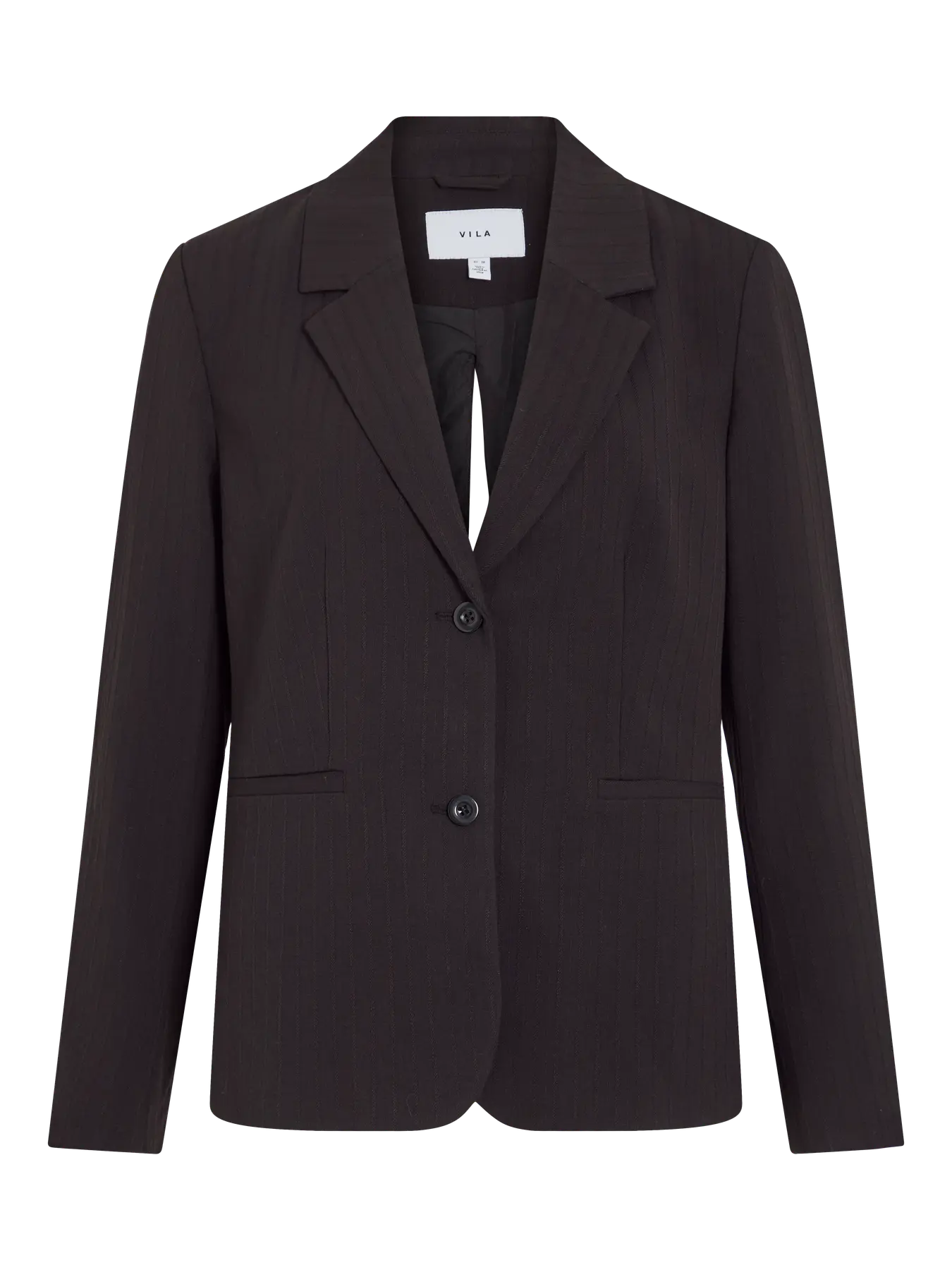Blazer estruturado, corte regular, com detalhe de costas abertas a atar com laço. Tecido preto com risca muito discreta no mesmo tom.