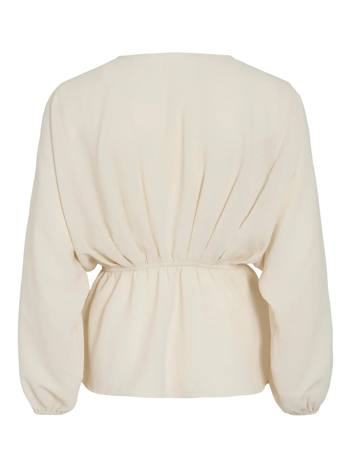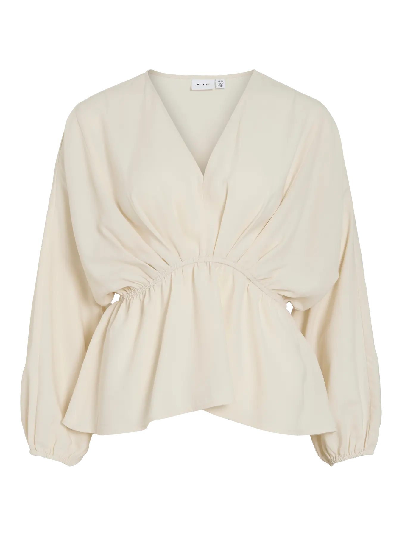 VISELIA V-NECK PEPLUM TOP BIRCH / ATLANTIC DEEP